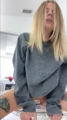 Petite blonde in sexy kneesocks cums hard